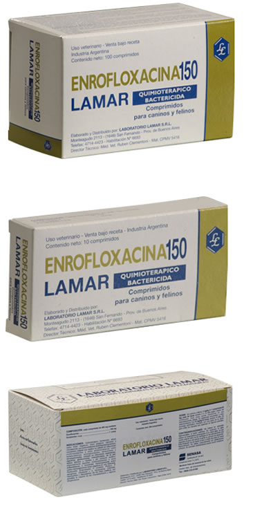 Fórmula: Enrofloxacina 150 mg/comprimido